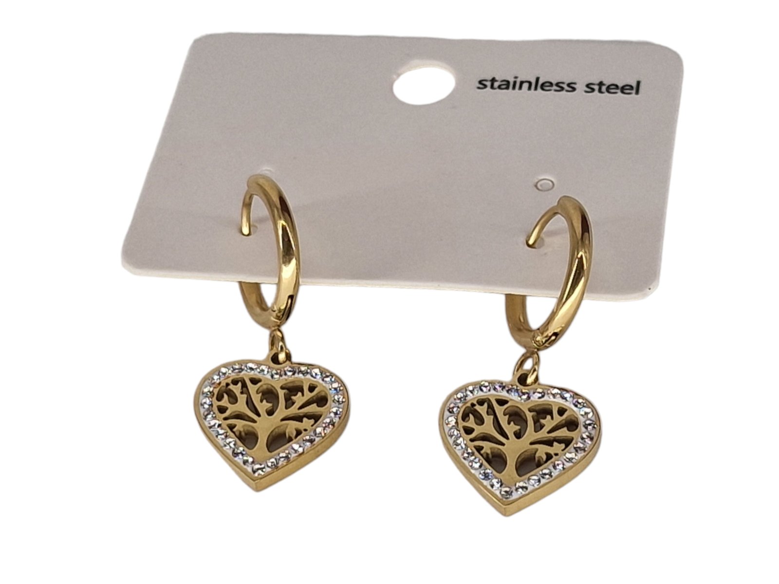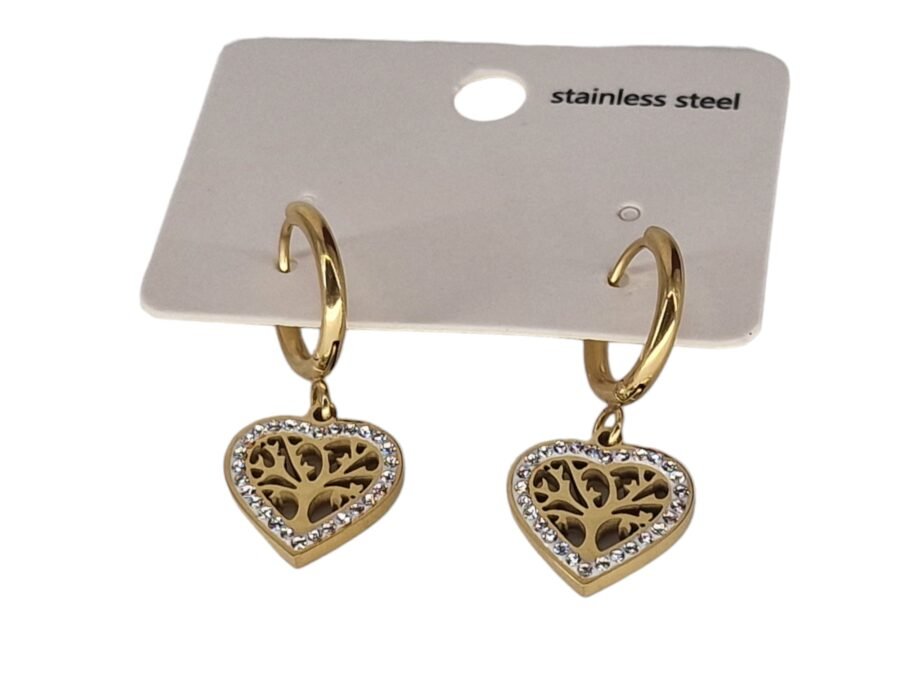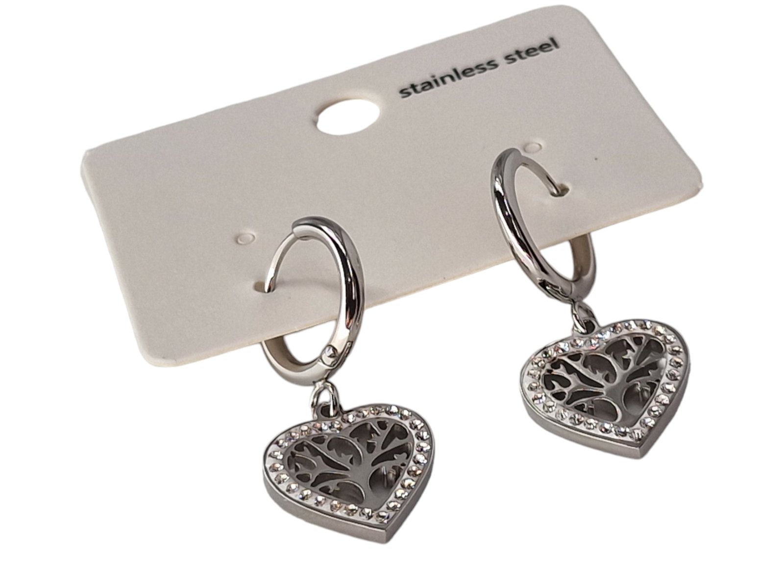 Ατσάλινα Σκουλαρίκια Κρεμαστά Δέντρο Της Ζωής Σε Καρδούλα Με Στράς