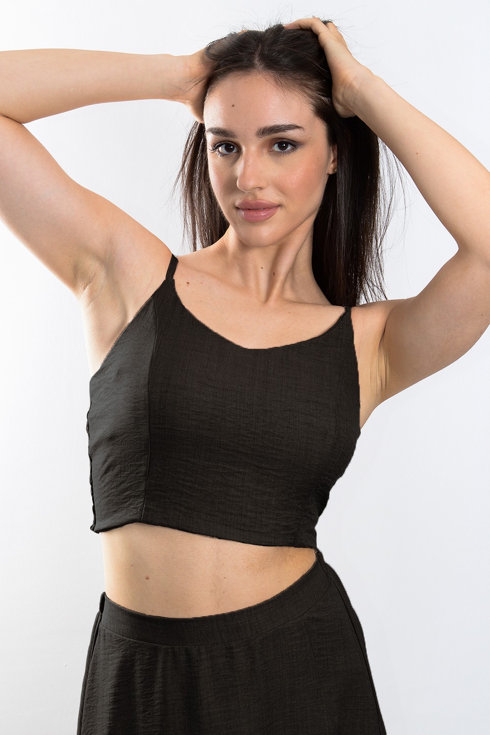 Κροπ Τοπ Λινό με ρυθμιζόμενη Τιράντα,λάστιχο σφηκοφωλιά στην πλάτη,καλύπτει έως L
