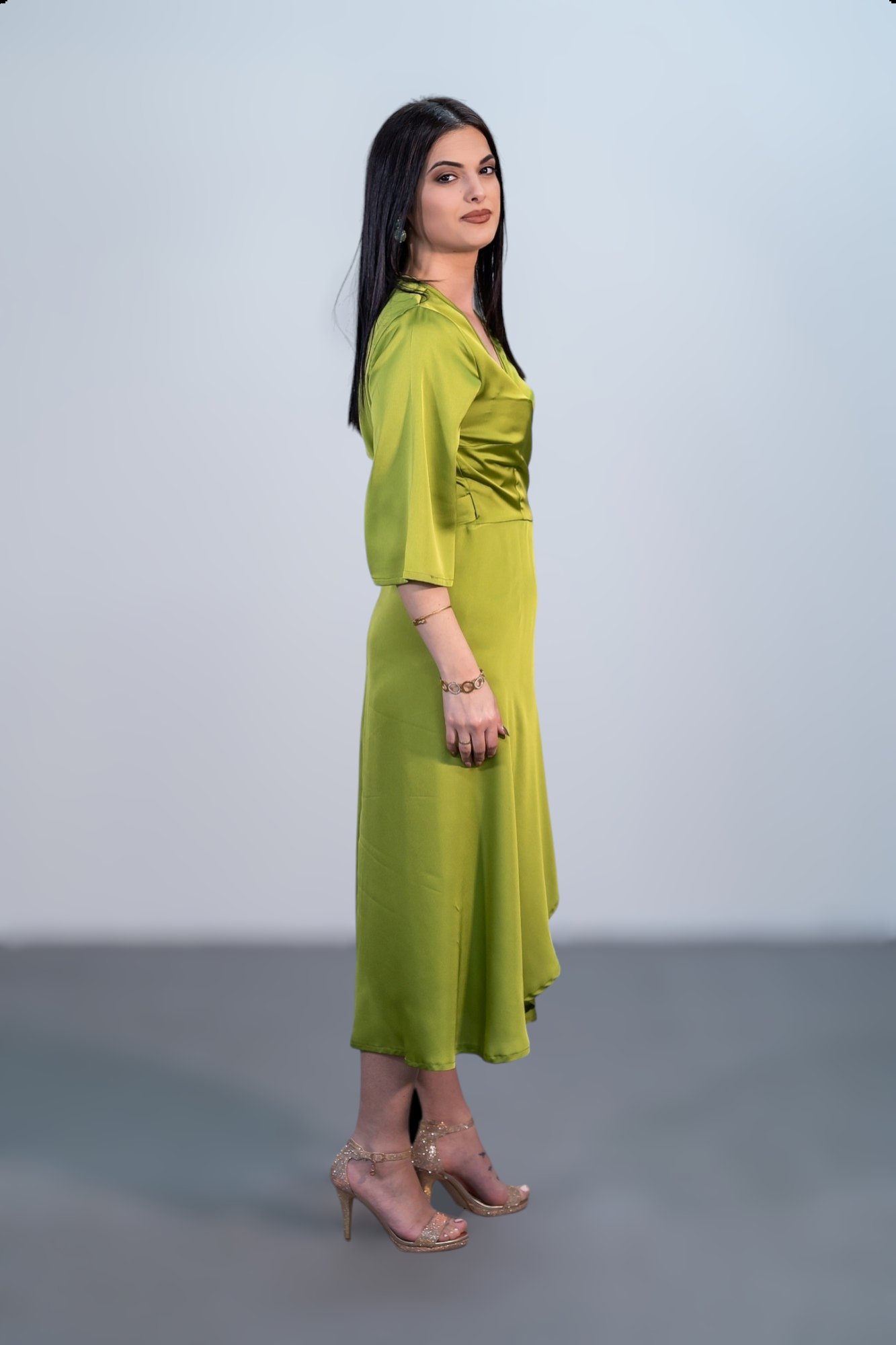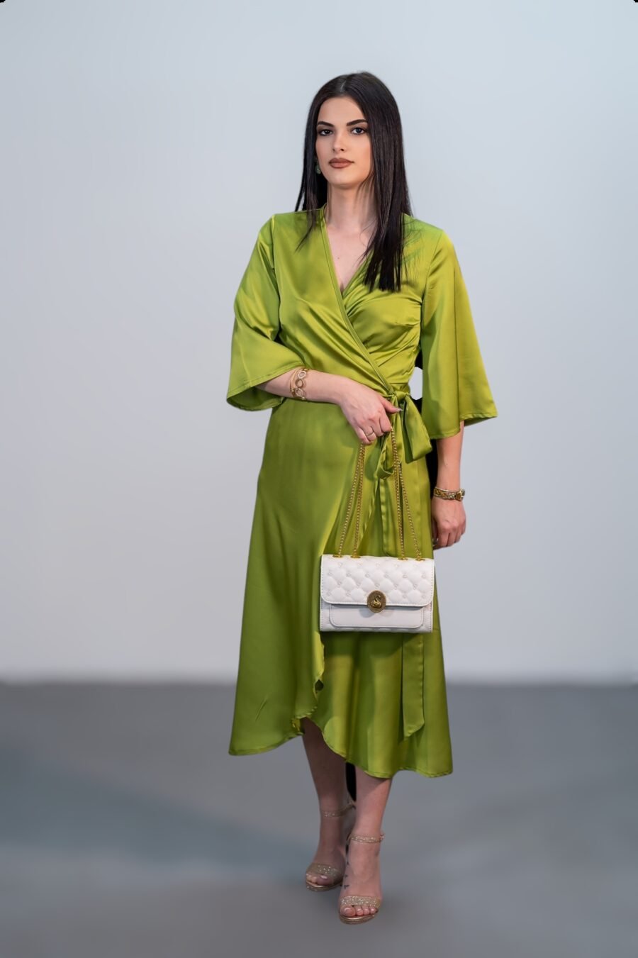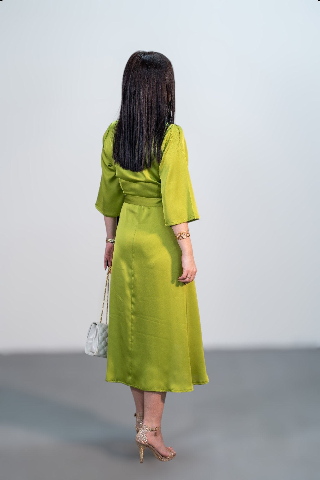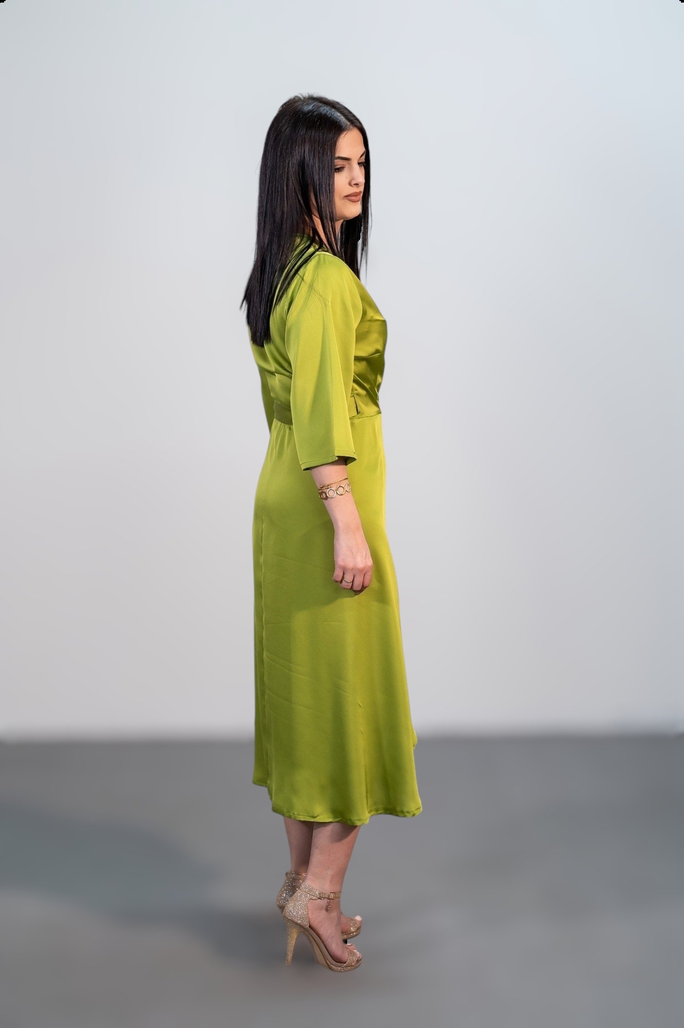Φόρεμα Σατέν Μονόχρωμο Με Δέσιμο Κρουαζέ
