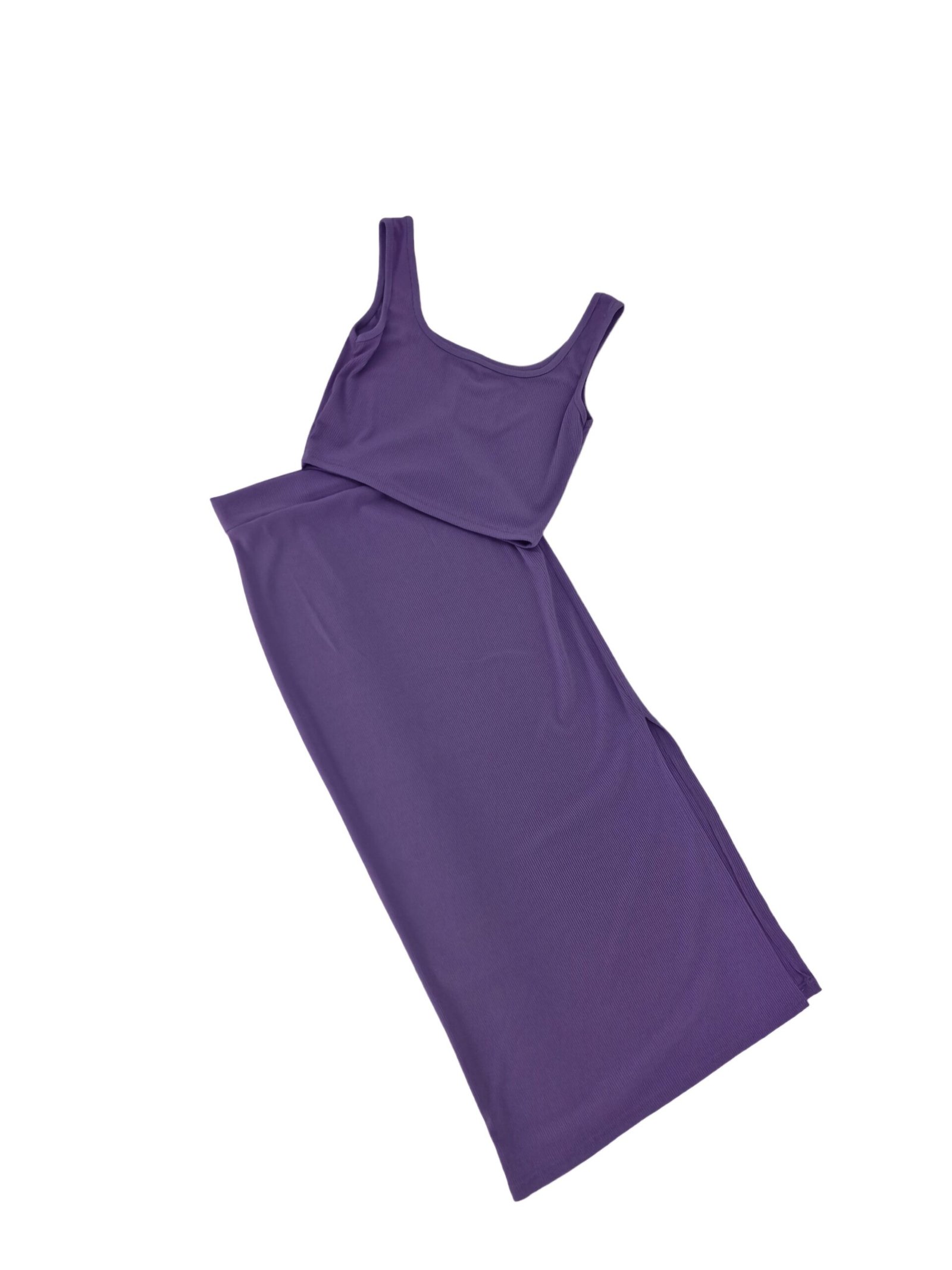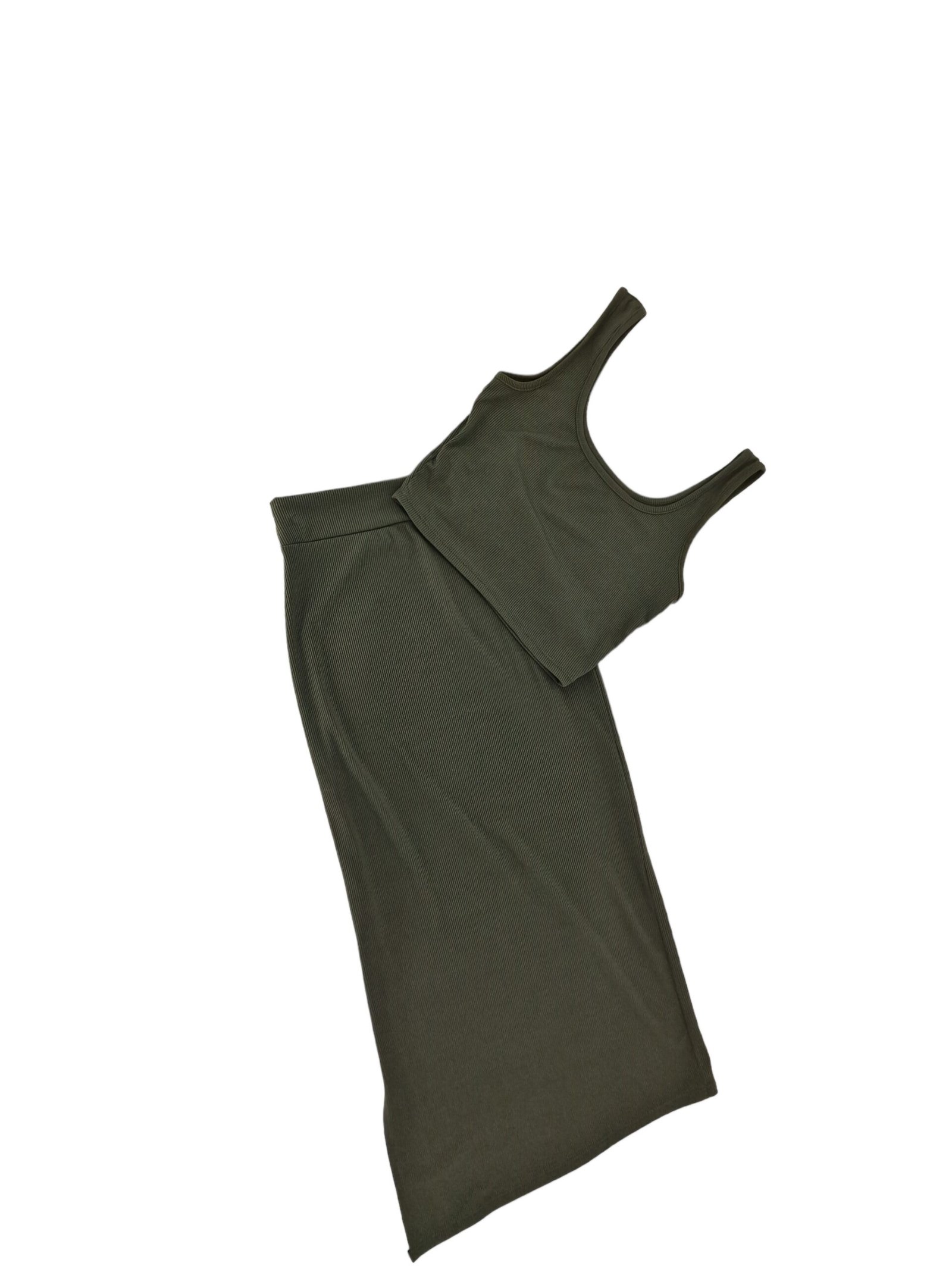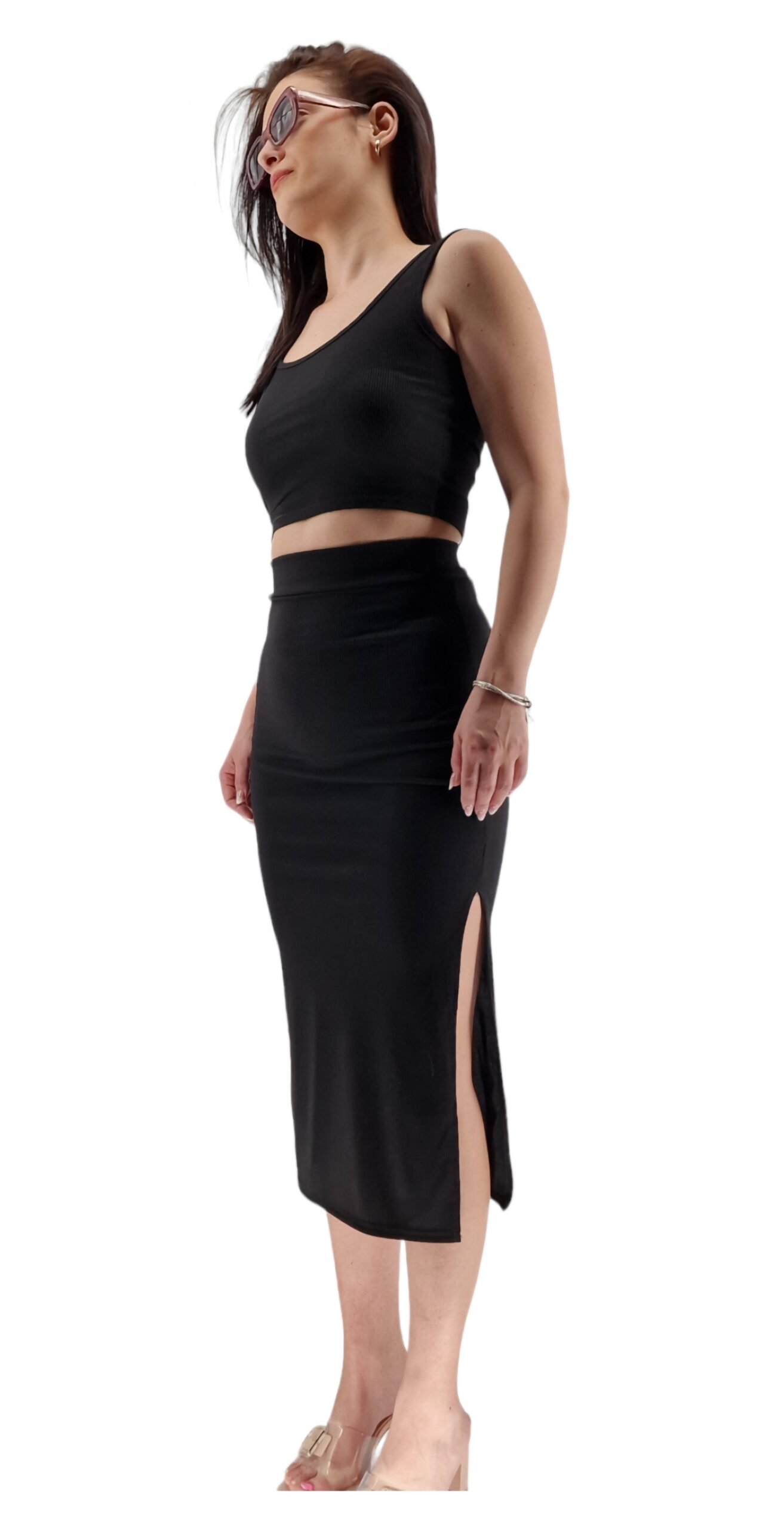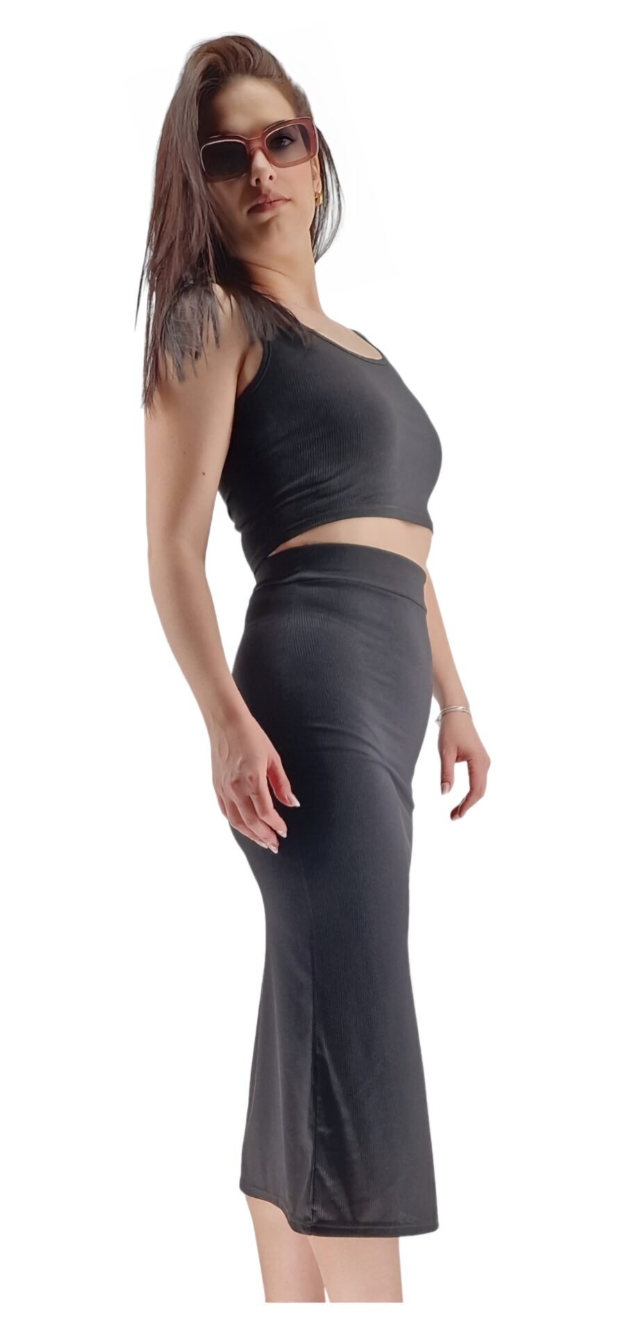 Σετ κροπ τοπ και φούστα midi με σκίσιμο στο πλάι, rib, καλύπτει νούμερα έως M
